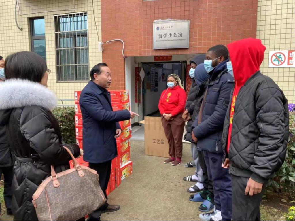本網(wǎng)訊(通訊員 徐春梅 劉靜)2022年1月30日上午,校黨委副書記李志旭一行來到武昌校區(qū)8號宿舍樓,看望慰問寒假期間留校的23名留學(xué)生,為他們送上學(xué)校的新春祝福和新年禮物。