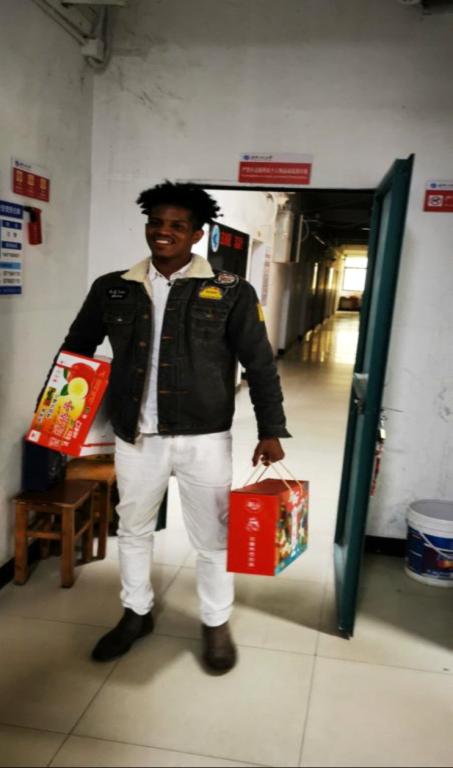 留學(xué)生AHMED MOHAMED IBRAHIM (中文名馬云)收到禮物后,非常開心,豎起大拇指說工程大真好,感謝學(xué)校領(lǐng)導(dǎo)帶來的溫暖祝福和親切慰問,并表示一定嚴(yán)格自覺遵守學(xué)校的疫情防控管理規(guī)定,加強(qiáng)學(xué)習(xí),同時也祝福學(xué)校老師們新年快樂!